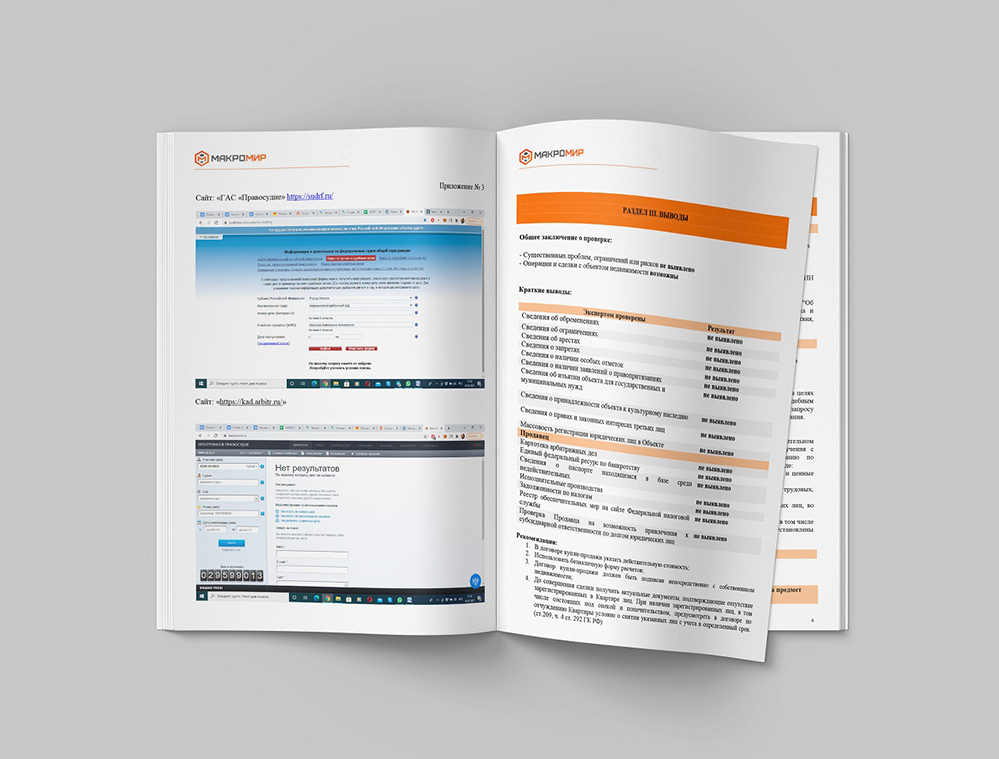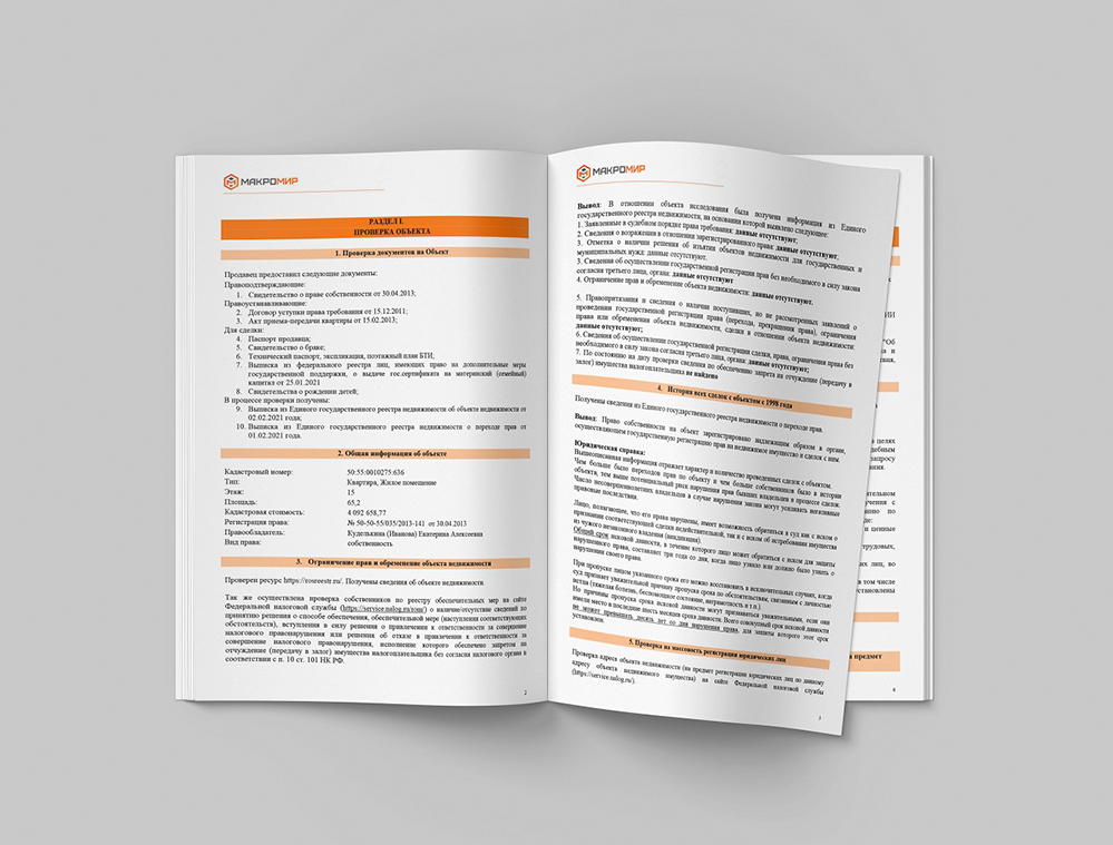 Используя предоставленные вами документы и данные из Росреестра, наш эксперт проводит комплексный анализ всей представленной информации и готовит отчет с оценкой рисков и рекомендациями по покупке объекта.